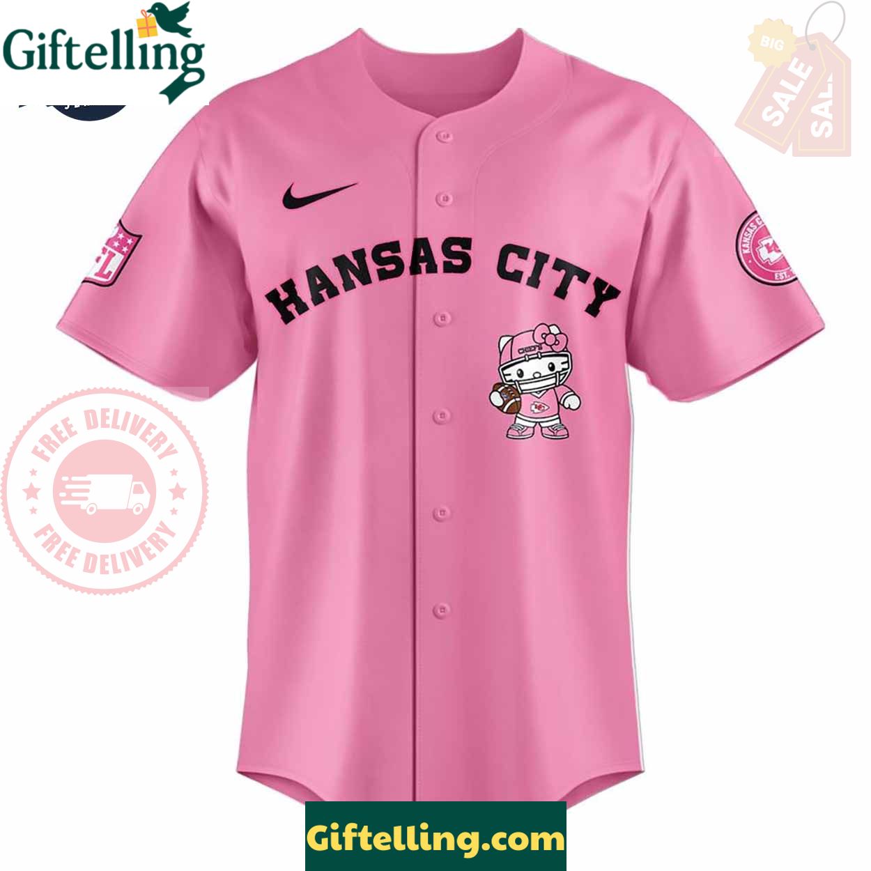 Kansas City Chiefs Hello Kitty Pink NFL Baseball Jersey