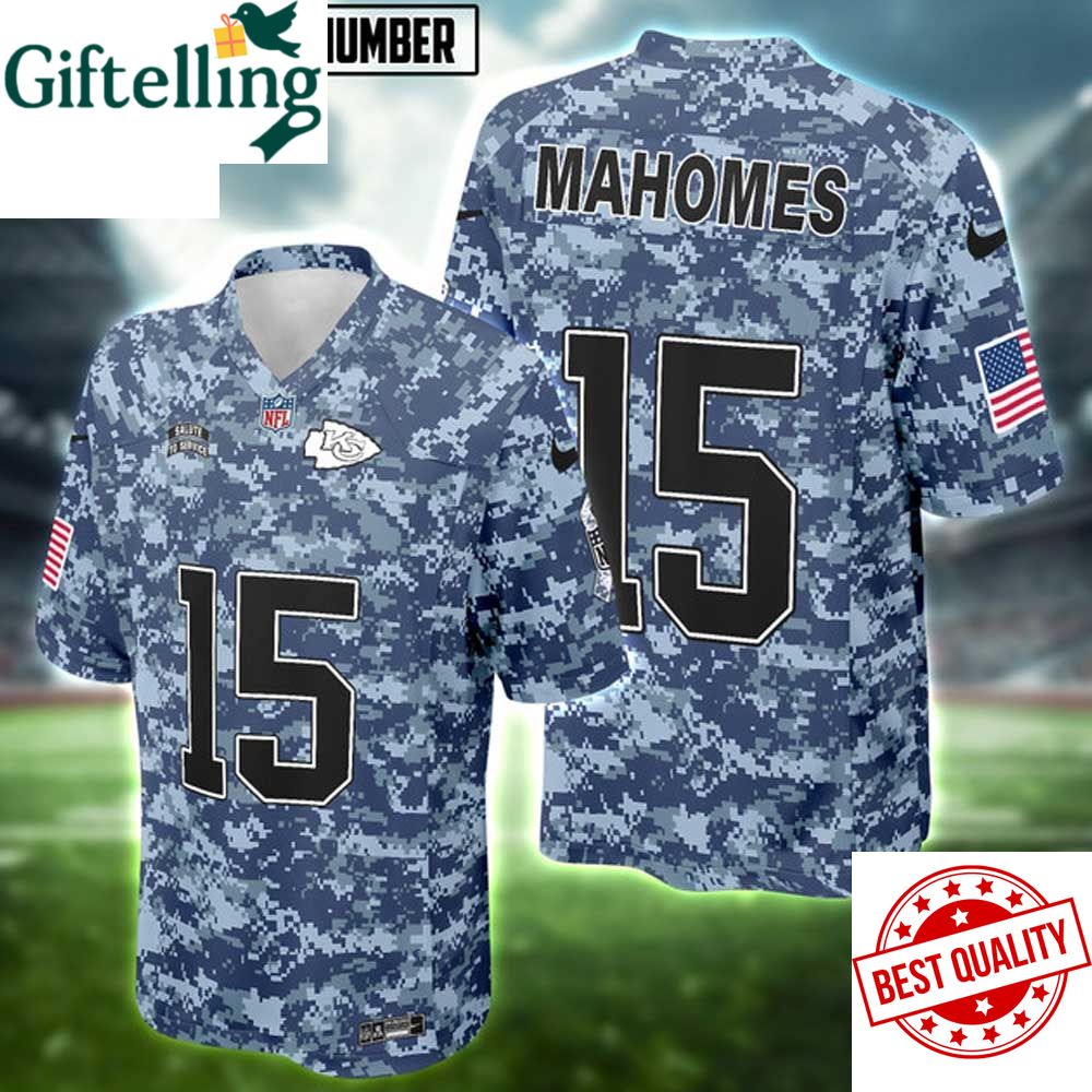 Order your Kansas City Chiefs Mahomes Us Navy Veteran Salute To Service Camo Football Jersey at Giftelling! ❤️