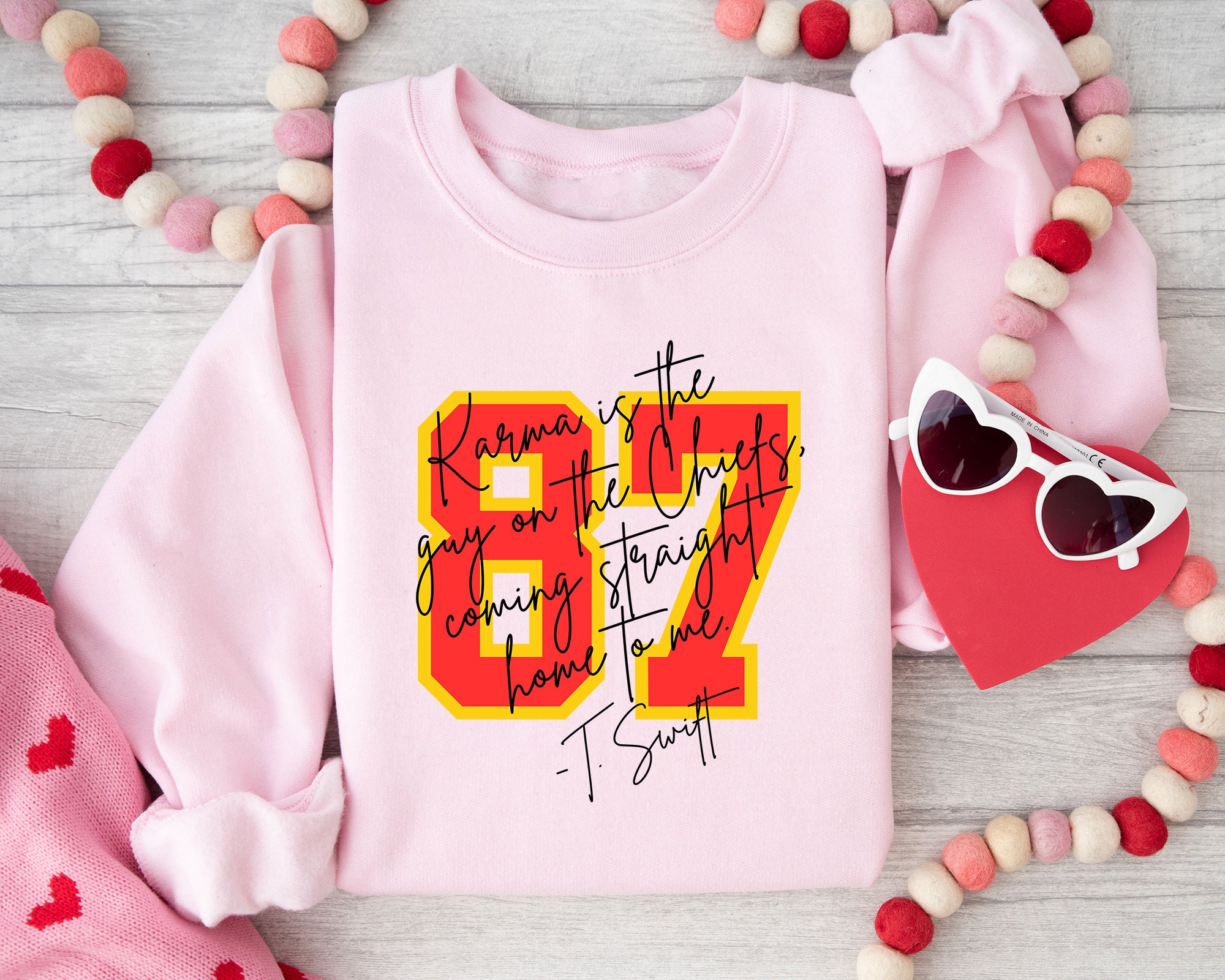 Don't miss out on this limited edition "Karma Is The Guy On The Chiefs" sweatshirt. It's more than just clothing; it's a statement. Get your Taylor Swift Travis Kelce Shirt today and let everyone know you're in on the magic!
