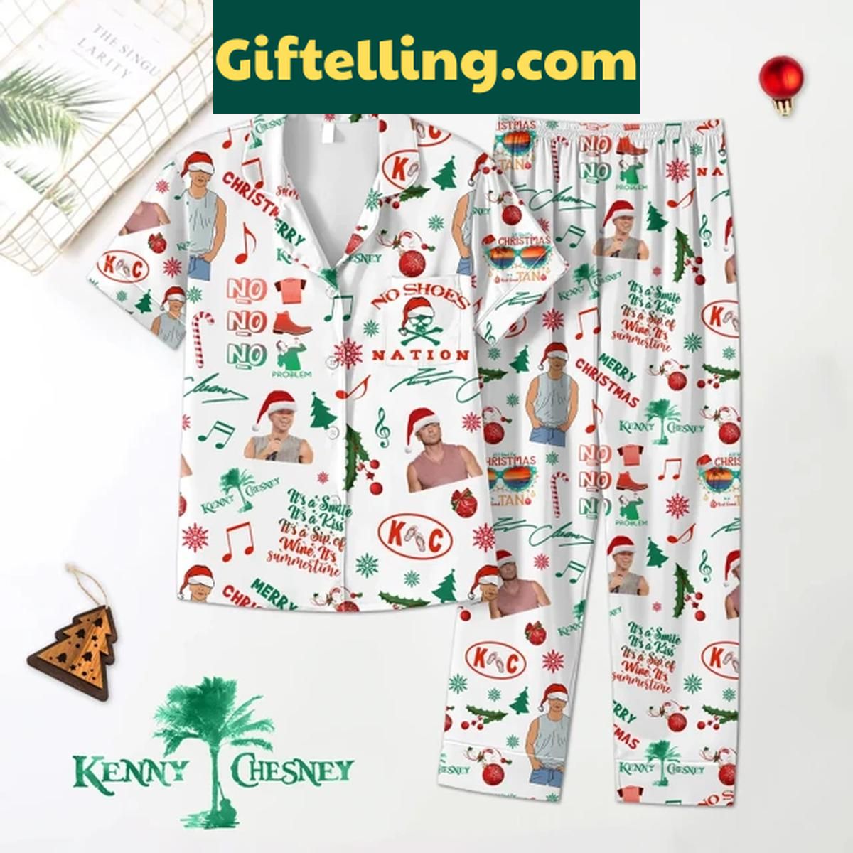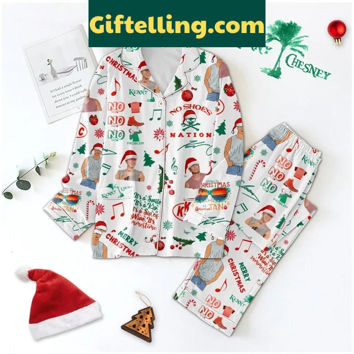 Order your Kenny Chesney Merry No Shoes Nation Christmas Polyester Pajamas Set at Giftelling! ❤️