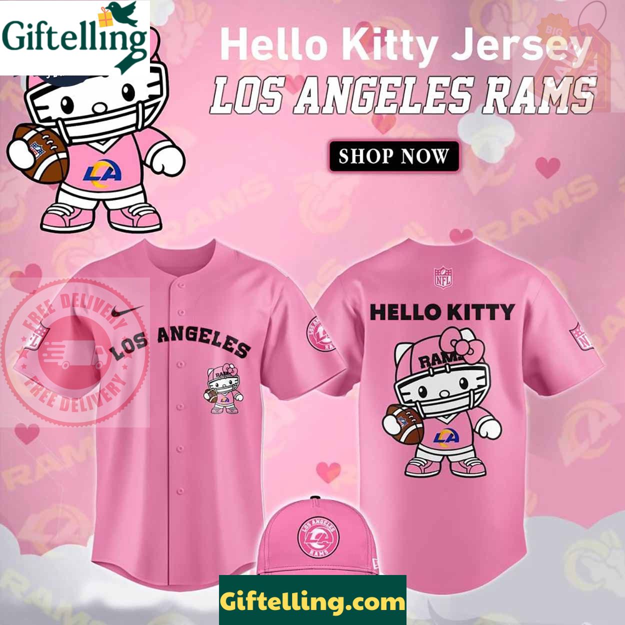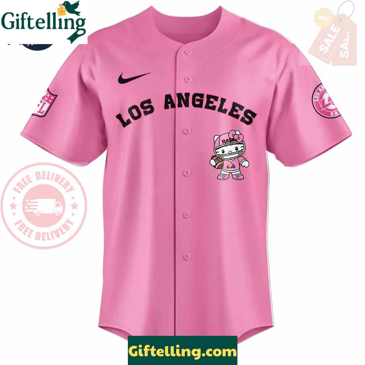 Order your Los Angeles Ram Hello Kitty Pink NFL Baseball Jersey at Giftelling! ❤️