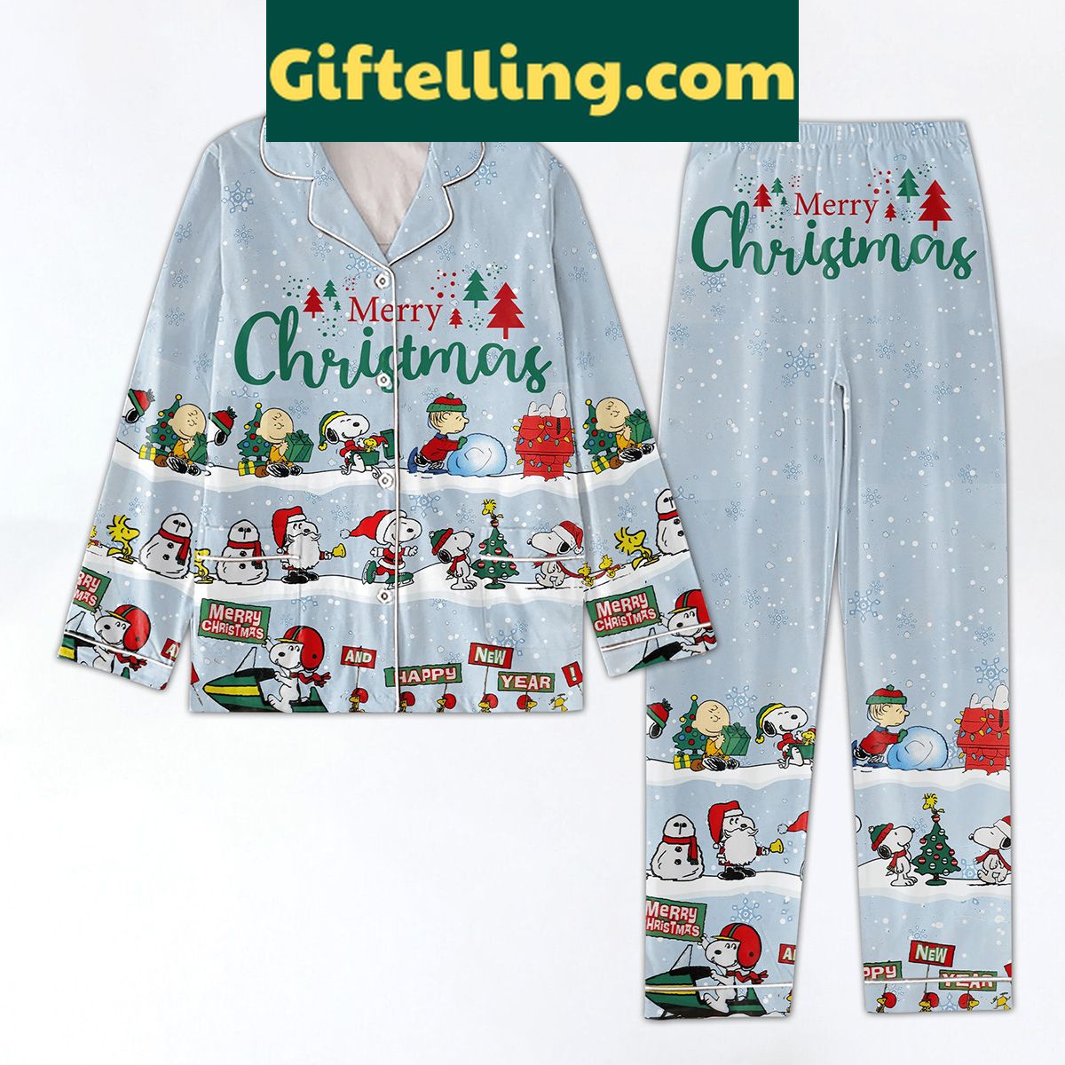 Celebrate the festive season in comfort with our Snoopy Peanuts Merry Christmas And Happy New Year Pajamas Set, perfect for a cozy holiday night
