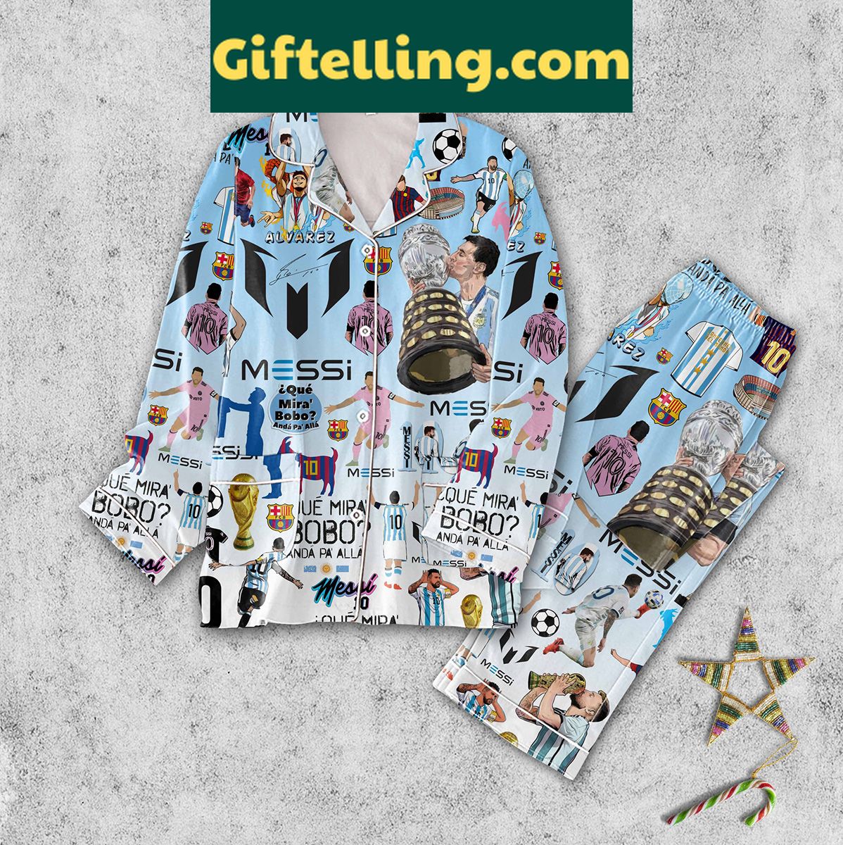 Messi The Goat Alvarez Argentina Barcelona Polyester Pajamas Set for Soccer Fans