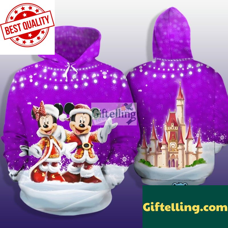 Order your Mickey And Minnie Mouse Magic Christmas 3D Hoodie Purple Puff Print at Giftelling! ❤️