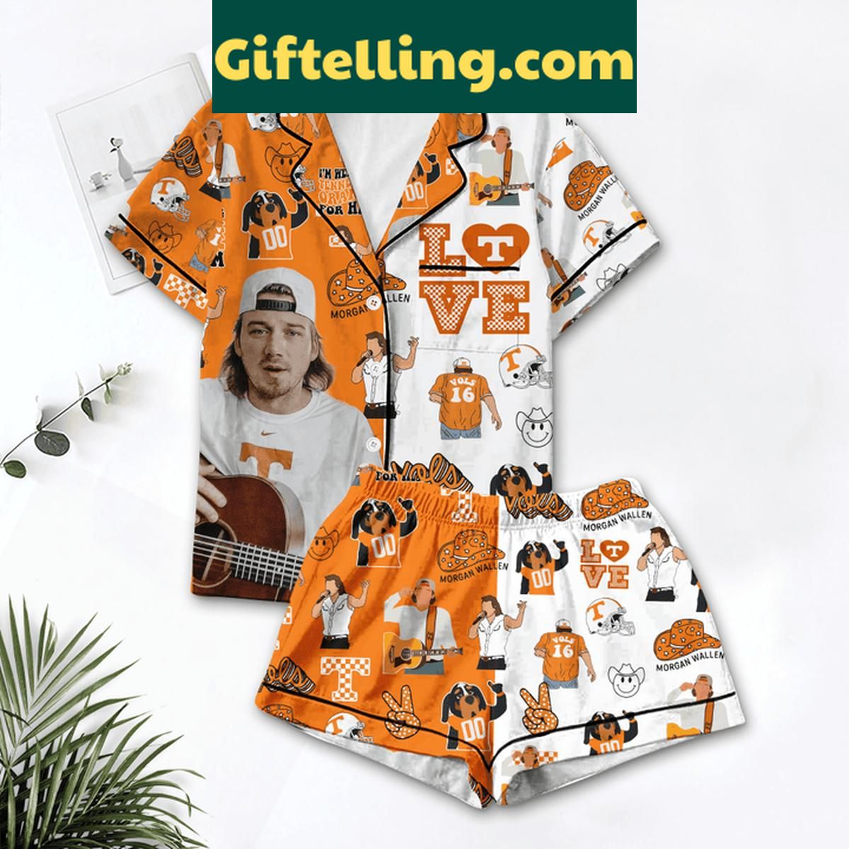 Morgan Wallen Love Tennessee Volunteers Polyester Pajamas Set for Fans
