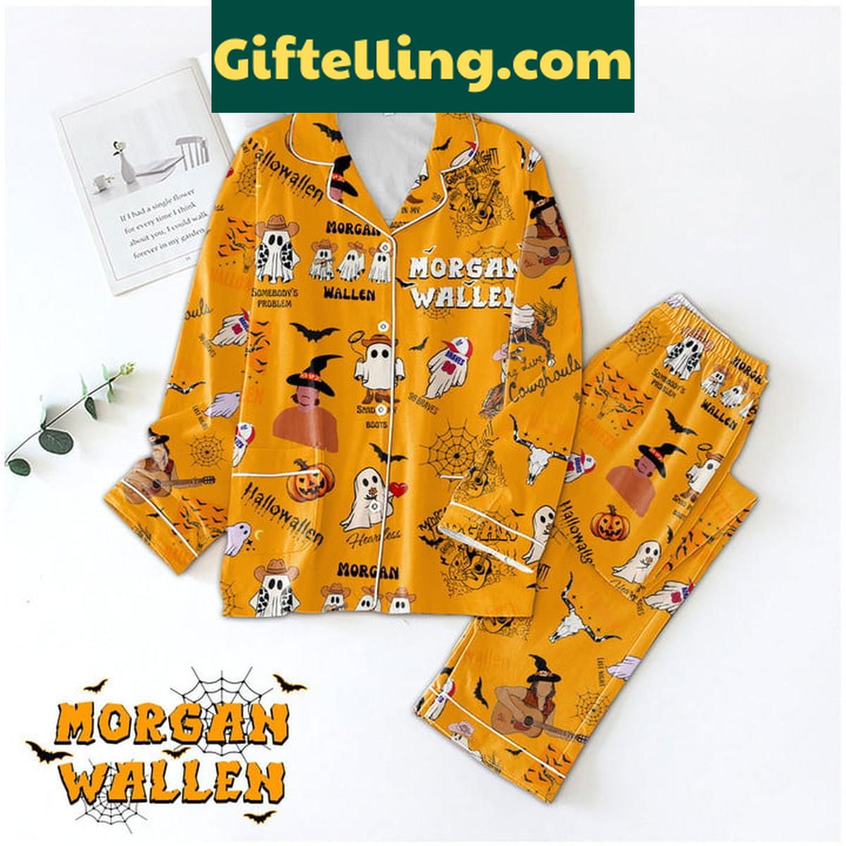 Don't miss out on this opportunity to elevate your Halloween style and show off your love for Morgan Wallen's music. Head over to Giftelling.com now and get your Morgan Wallen Sand In My Boot Halloween Polyester Pajamas Set today!