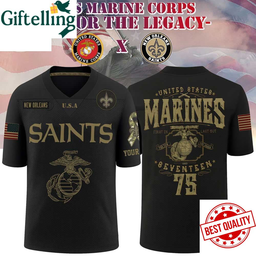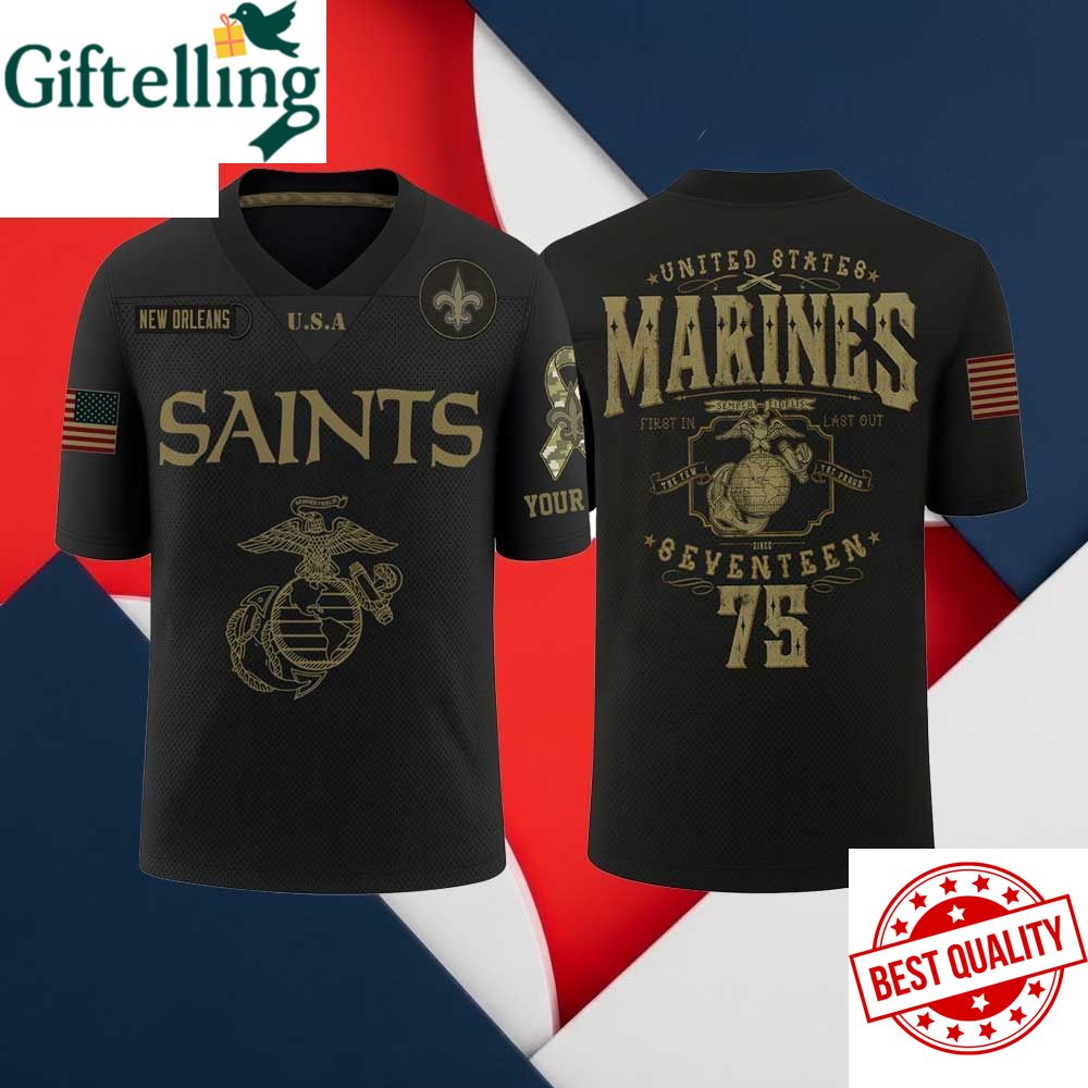 Order your New Orleans Saints x U.S Marine Corps Dark Vintage Custom Name Football Jersey at Giftelling! ❤️