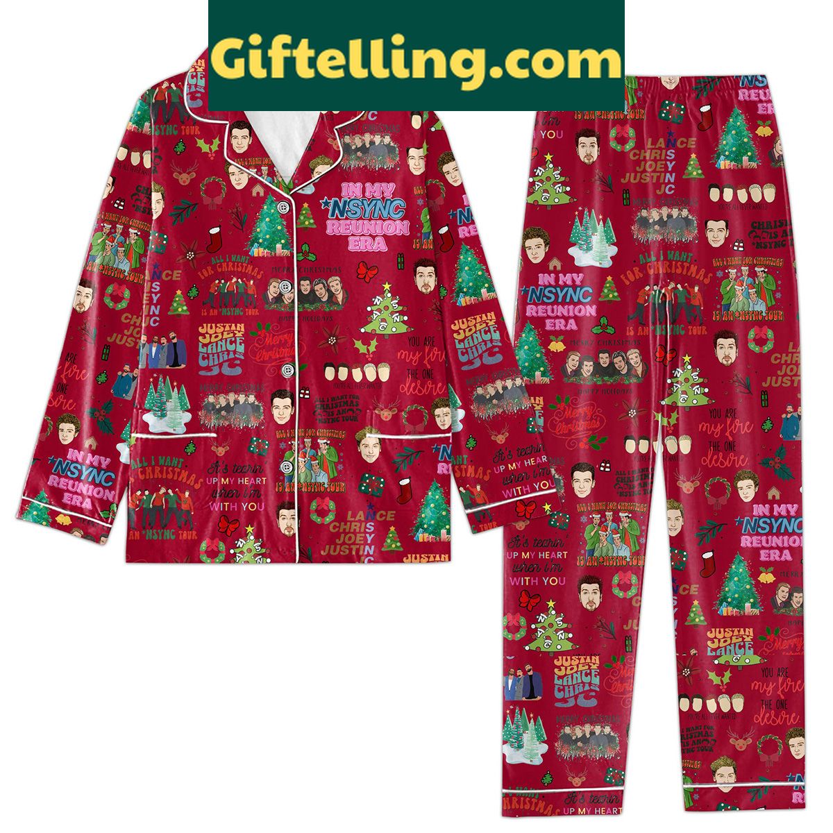 Ready to get your holiday groove on? Head over to Giftelling.com to purchase your NSYNC Reunion Era Tour Merry Christmas Happy Holidays Pajamas Set today and make this holiday season one to remember!