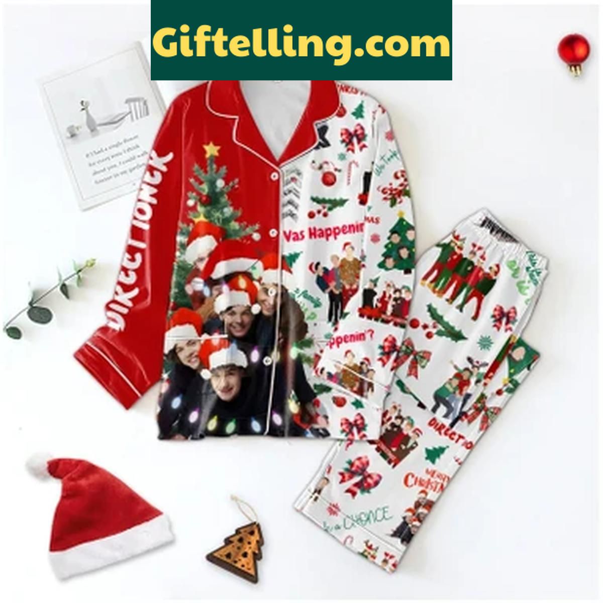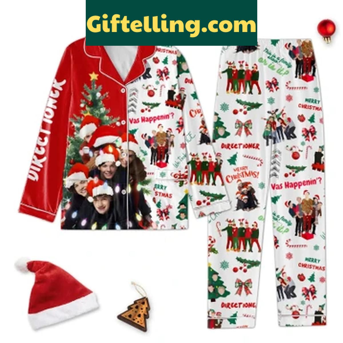 Get cozy this holiday season in the One Direction Merry Christmas Directioner Vas Happening Polyester Pajamas Set