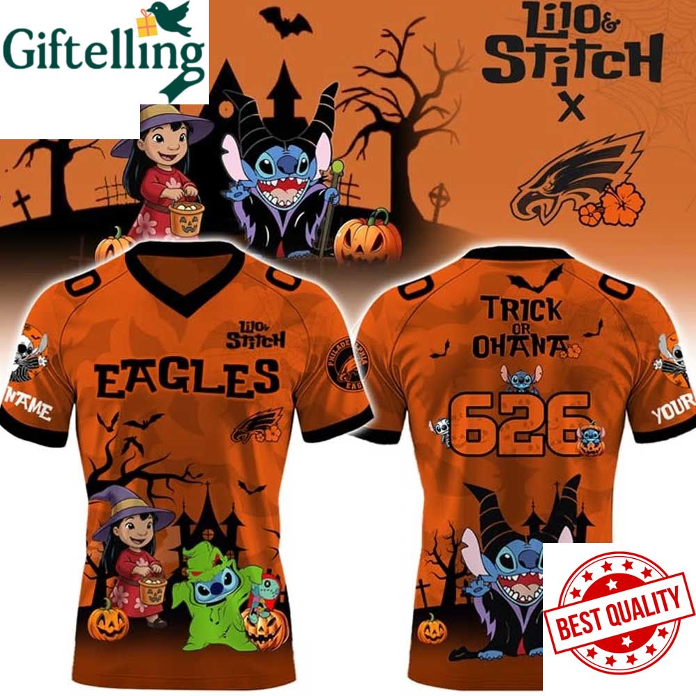 Order your Philadelphia Eagles x Lilo & Stitch Halloween Football Jersey Shirt Custom Name at Giftelling! ❤️