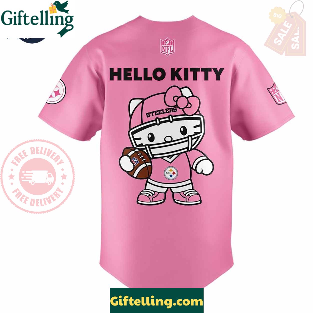 Order your Pittsburgh Steelers Hello Kitty Pink NFL Baseball Jersey at Giftelling! ❤️