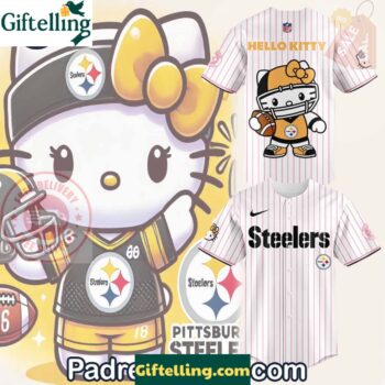 Order your Pittsburgh Steelers X Hello Kitty Baseball Jersey Outfit at Giftelling! ❤️