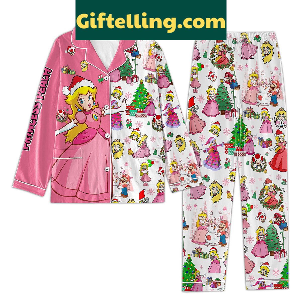 Order your Princess Peach Pink Happy Christmas Pajamas Set for Women at Giftelling! ❤️