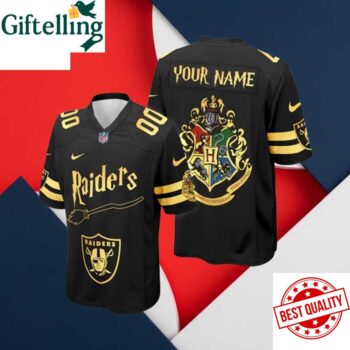 Raiders Nfl Harry Potter Hogwarts Black Gold Magic Custom Football Jersey