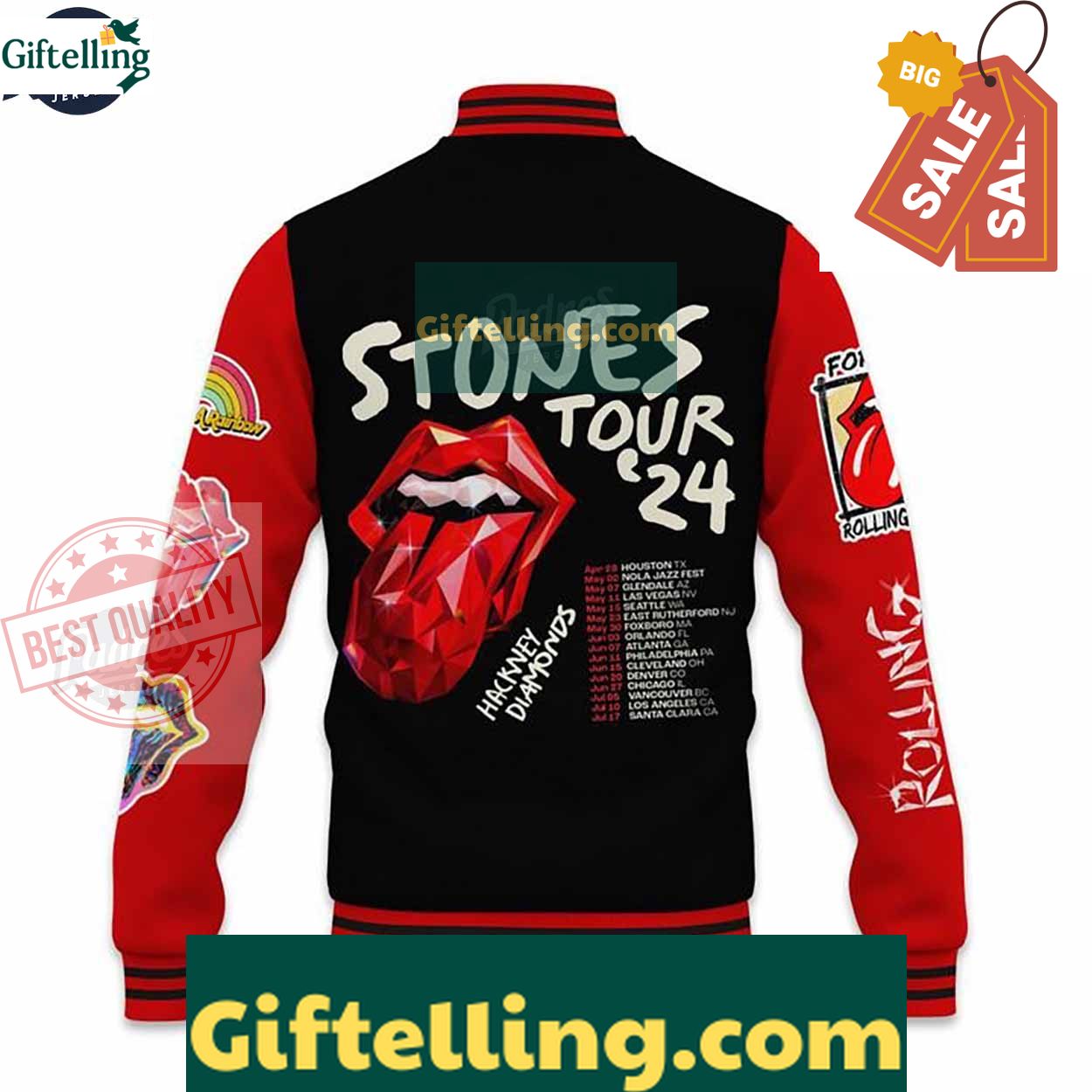 Order your Rolling Stone Tour 2024 Baseball Jacket- Custom Name MLB Gift at Giftelling! ❤️