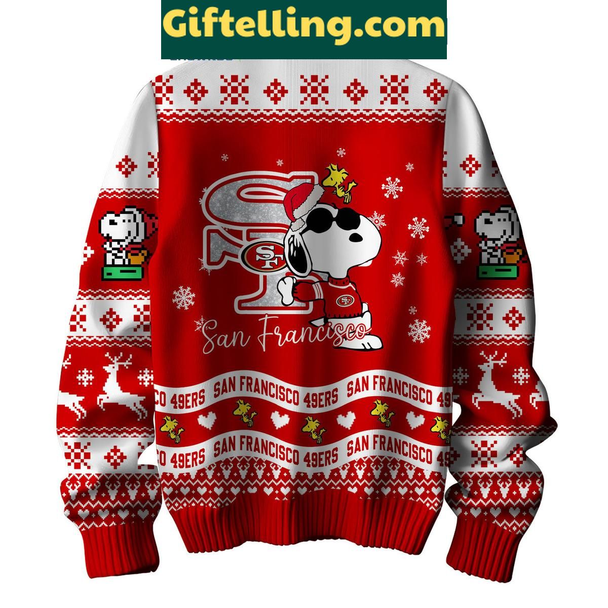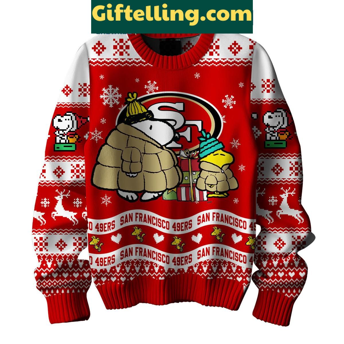 Order your San Francisco 49ers Peanuts Snoopy Ugly Sweater Christmas NFL Gift for Fans at Giftelling! ❤️