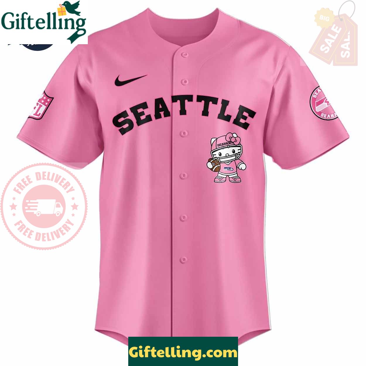 Order your Seattle Seahawks Hello Kitty Pink NFL Baseball Jersey at Giftelling! ❤️