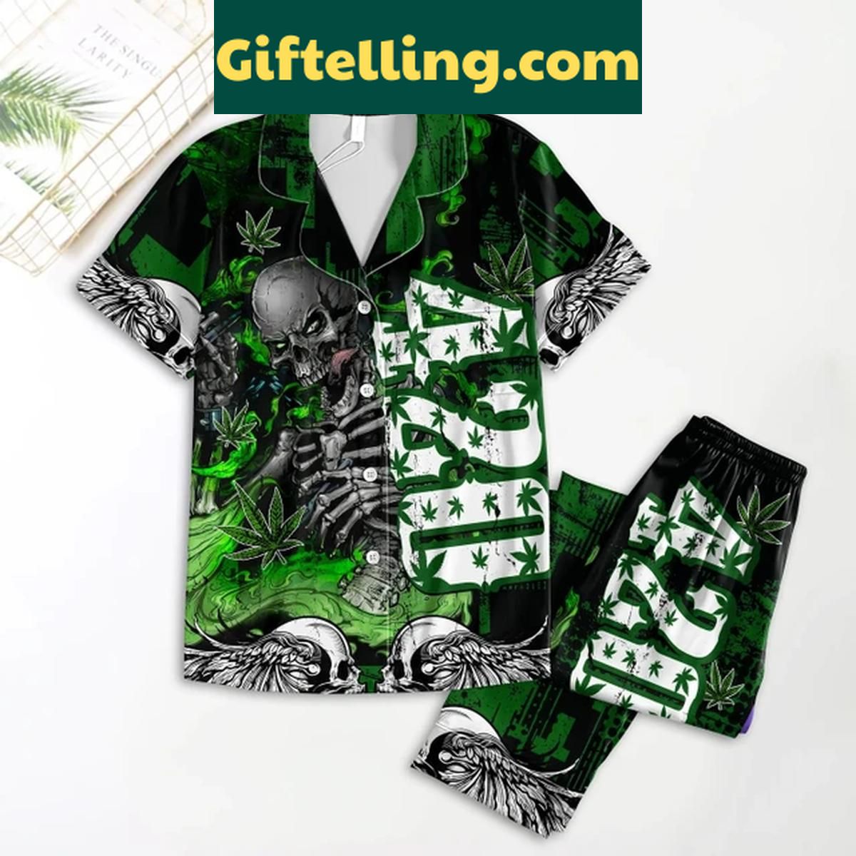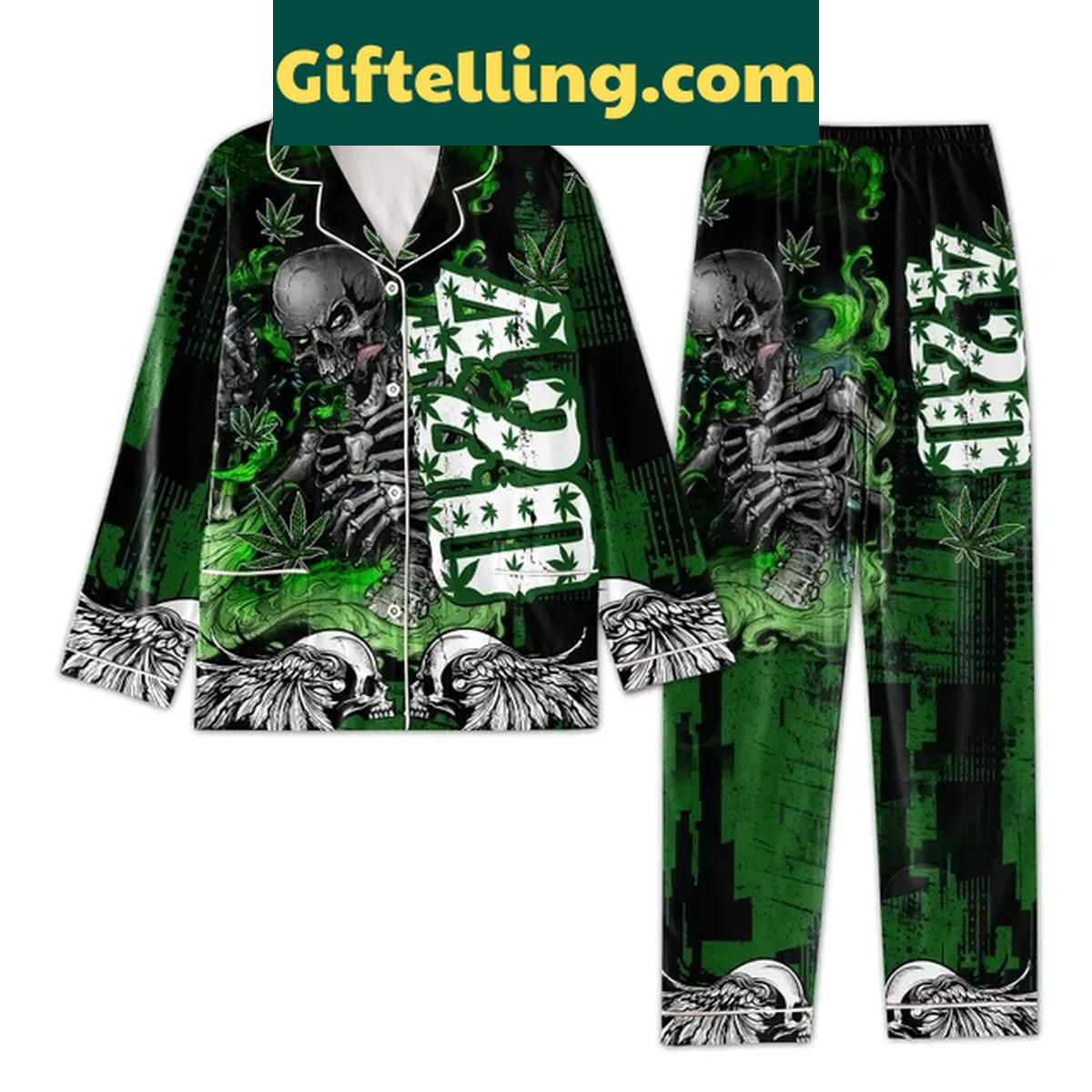 Skull Cannabis 420 True Love Polyester Pajama Set - Giftelling details: