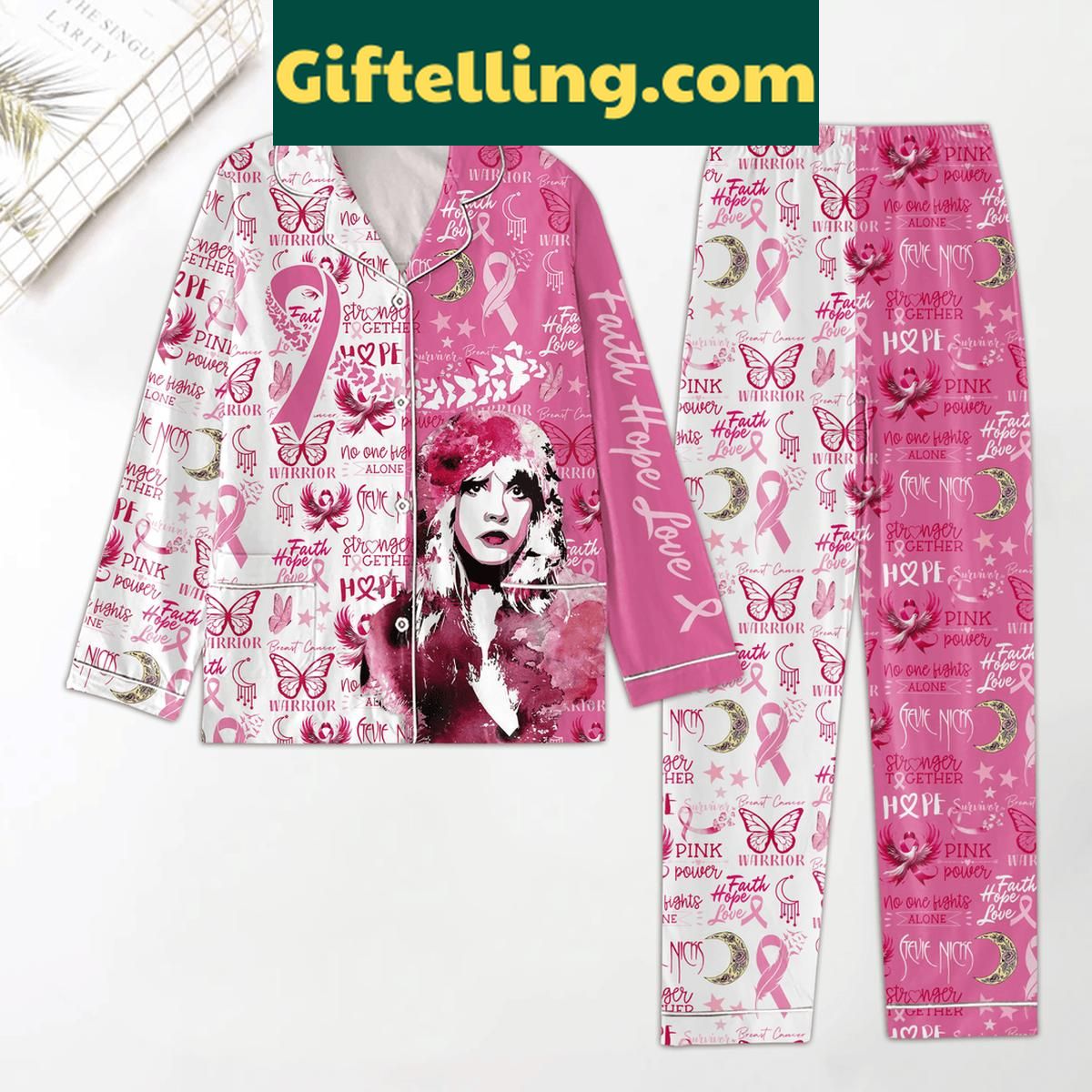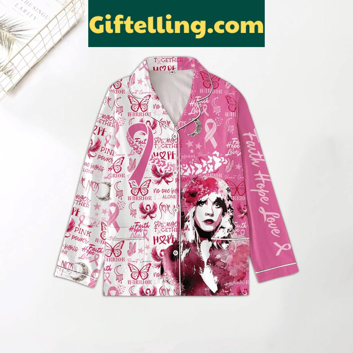 Order your Stevie Nicks Faith Hope Love Breast Cancer Warrior Polyester Pajamas Set - Support a Cause at Giftelling! ❤️