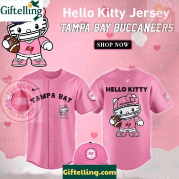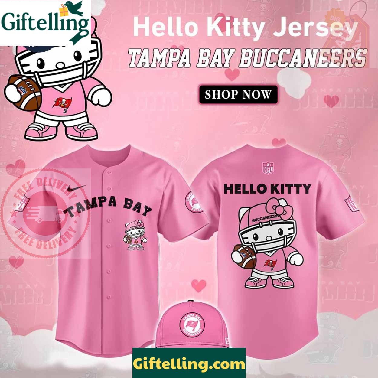 Order your Tampa Bay Buccaneers Hello Kitty Pink NFL Baseball Jersey at Giftelling! ❤️