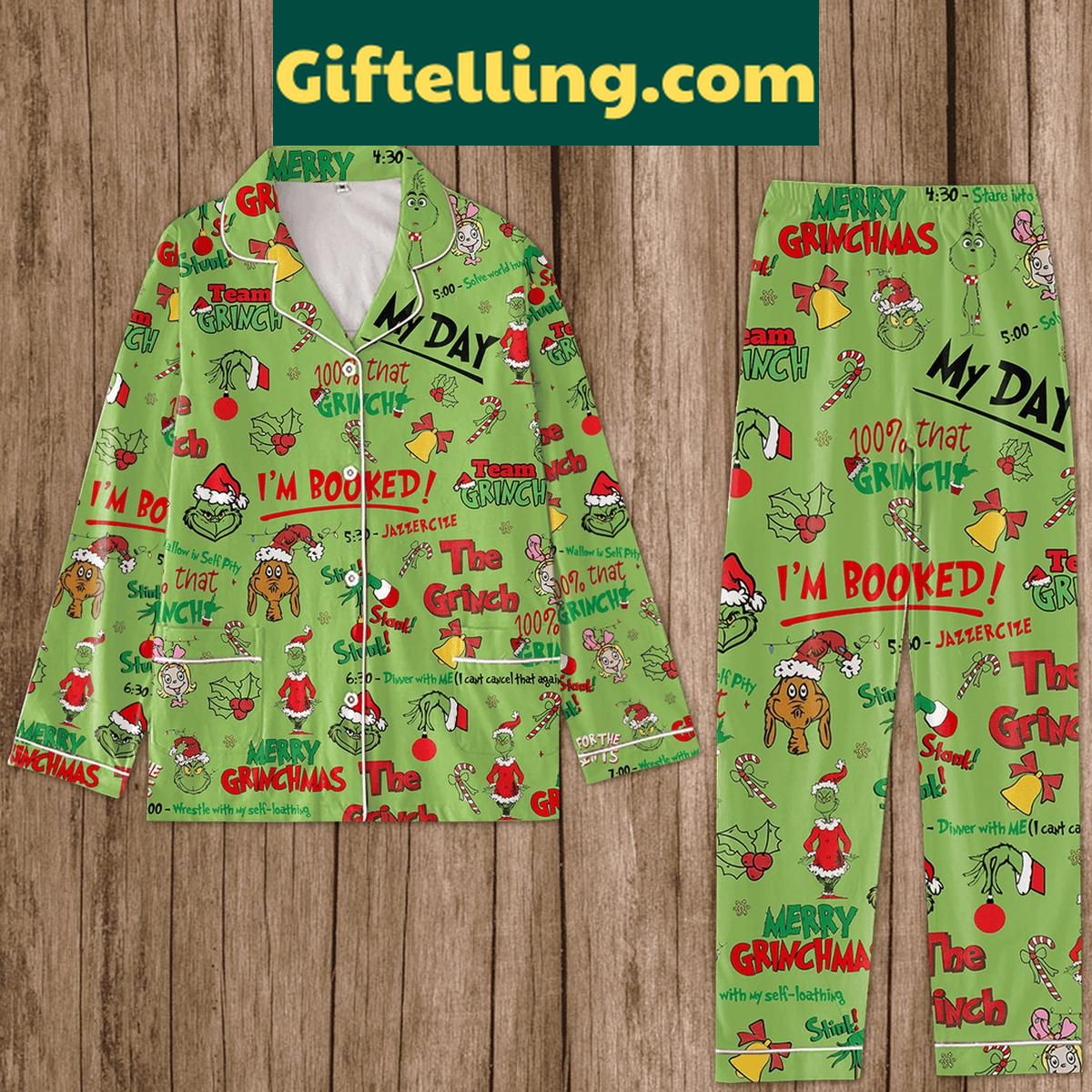 Order your The Grinch I'm Booked For Christmas Polyester Pajamas Set for Women at Giftelling! ❤️