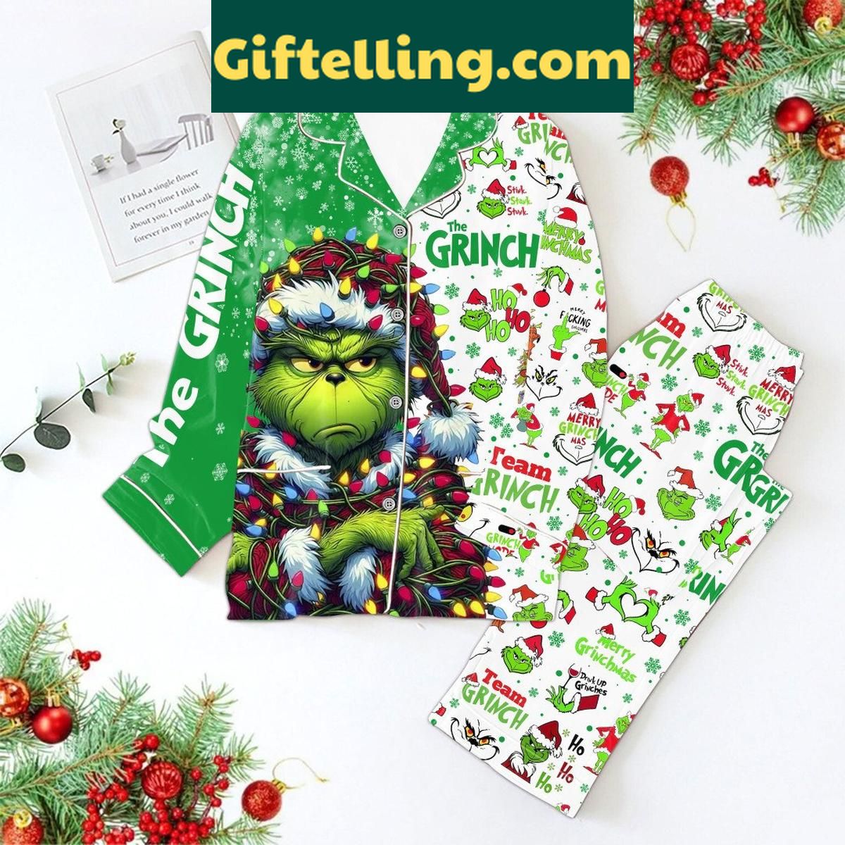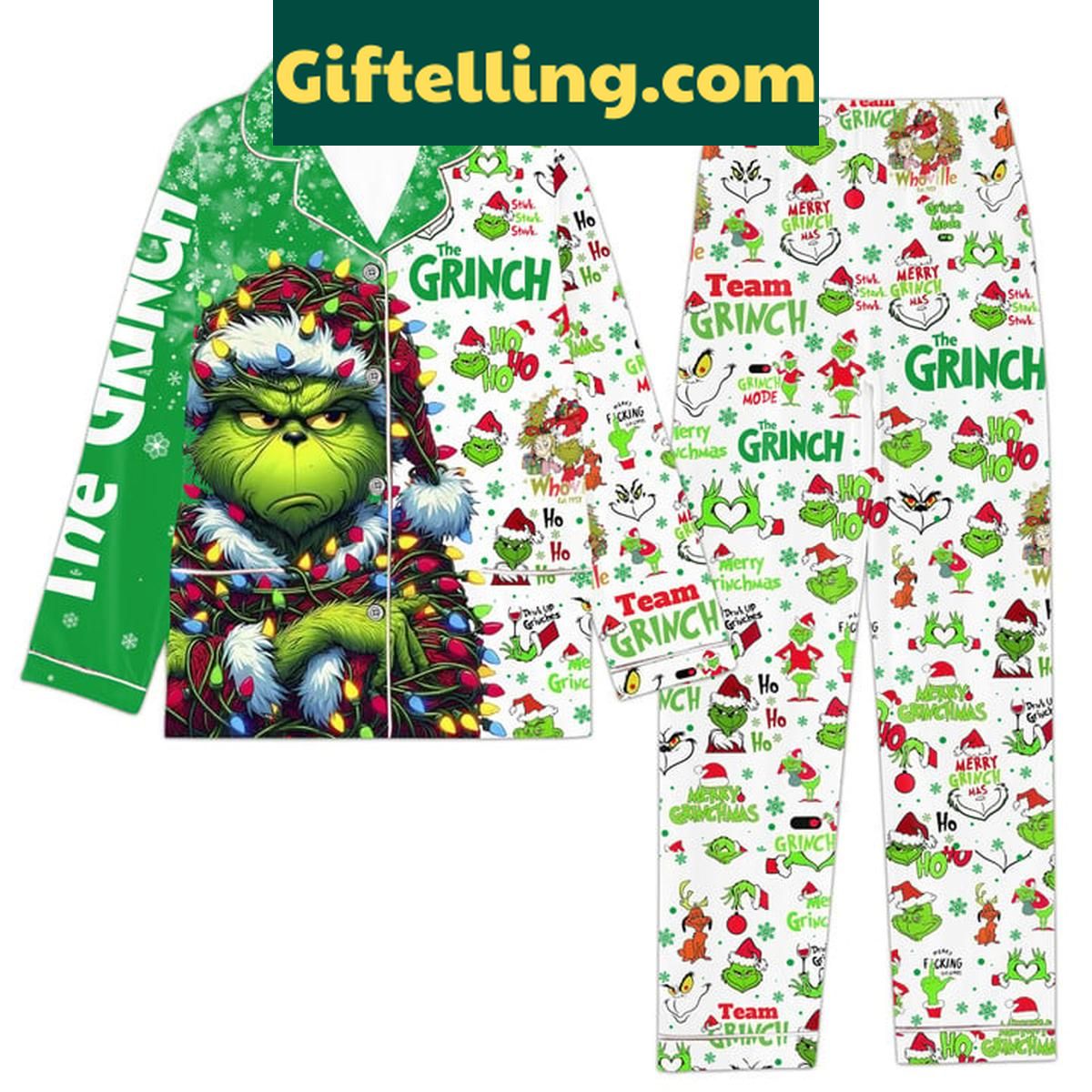 Ready to join the Grinch's grumpy gang? Head to Giftelling.com to get your hands on this fun and festive pajama set today!
