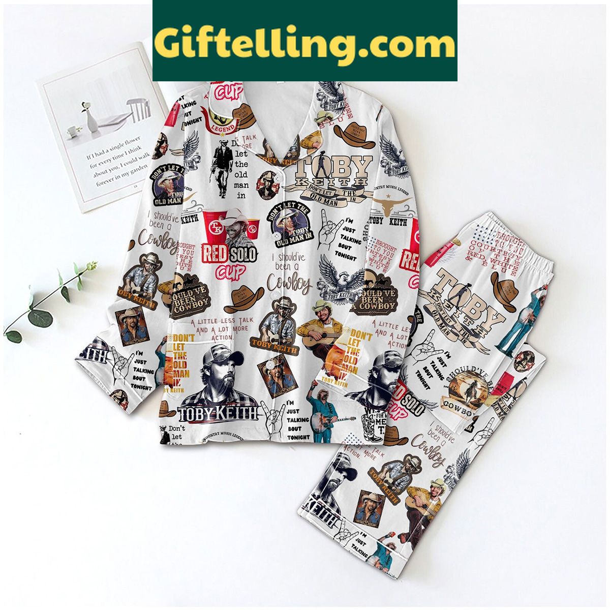 Get your Toby Keith Been a Cowboy Fan Polyester Pajamas Set White, perfect for country music fans who love to show their spirit in comfort.