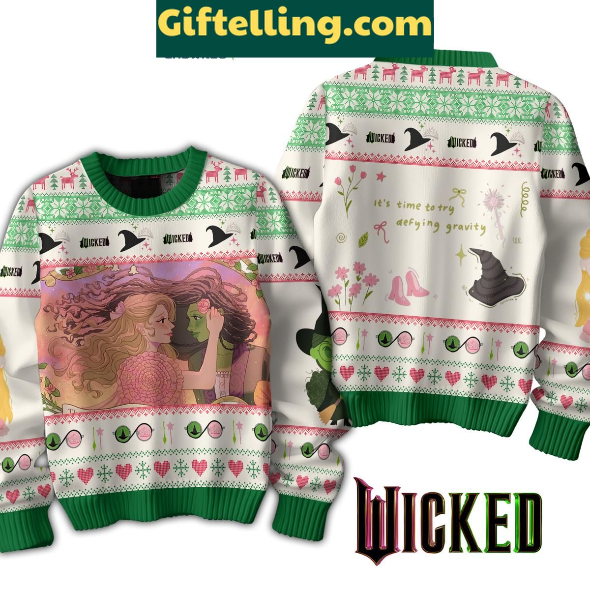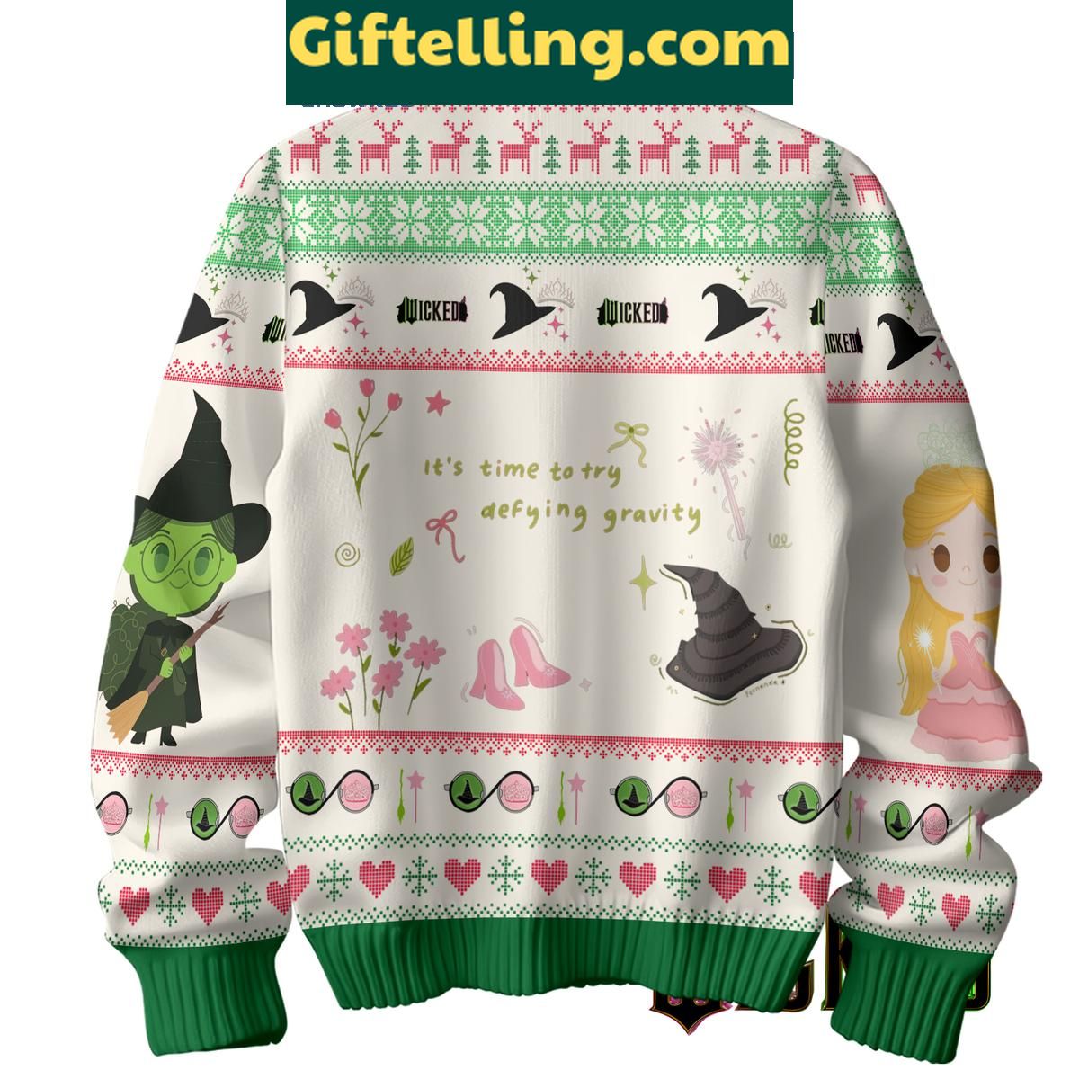 Ready to take your holiday style to new heights? Visit Giftelling.com to get your Wicked 'It's Time To Try Defying Gravity' ugly sweater today!