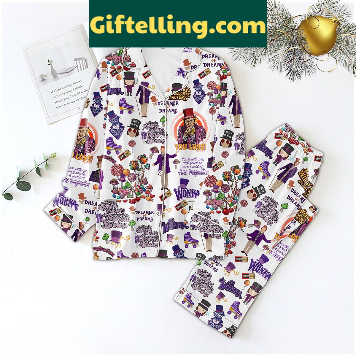 Order your Willy Wonka Dreamer Of The Dreams White Edition Polyester Pajamas Set - Cozy Gift Idea at Giftelling! ❤️