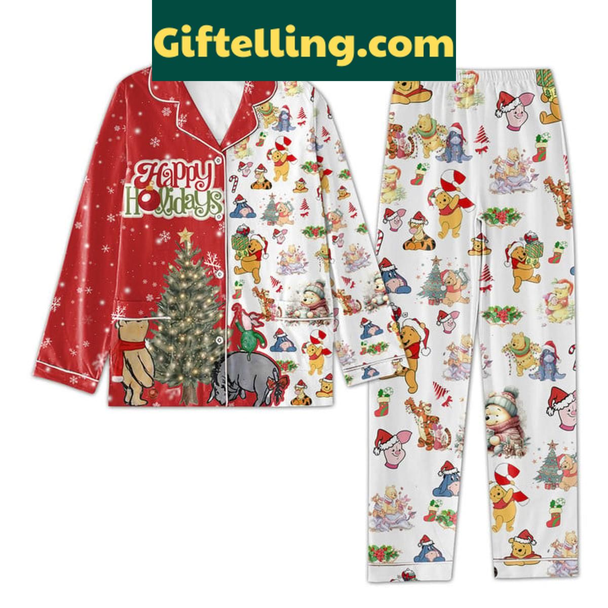 Winnie The Pooh Christmas Time Happy Holiday Polyester Pajamas Set for a festive holiday season