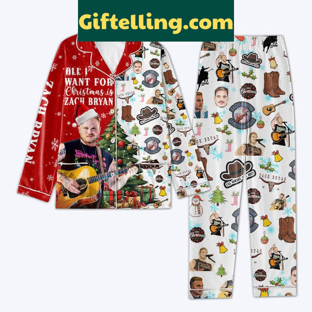 Ready to get your holiday cheer on? Head over to Giftelling.com to purchase the Zach Bryan All I Want For Christmas Is Him Polyester Pajamas Set 2024 and start making merry memories with your loved ones!